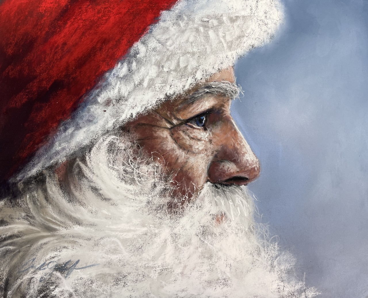 White subjects are some of the trickiest to paint — especially hair, beards, fur, and fabric. In this pastel lesson, we focus on creating rich, dimensional whites using temperature shifts, layered color, and expressive mark-making rather than heavy pressure or pure white everywhere. Using this Santa portrait as inspiration, you’ll learn how to build believable texture, soft edges, and depth while keeping the piece lively and painterly. This lesson is ideal for artists who struggle with white areas feeling chalky, stiff, or overworked.