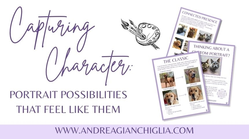 Want a pet portrait but unsure what would feel most right? This free guide will walk you through thoughtful portrait possibilities that go beyond a single photo. From classic and playful to soulful and deeply personal, you’ll see different ways your animal’s character can be captured.